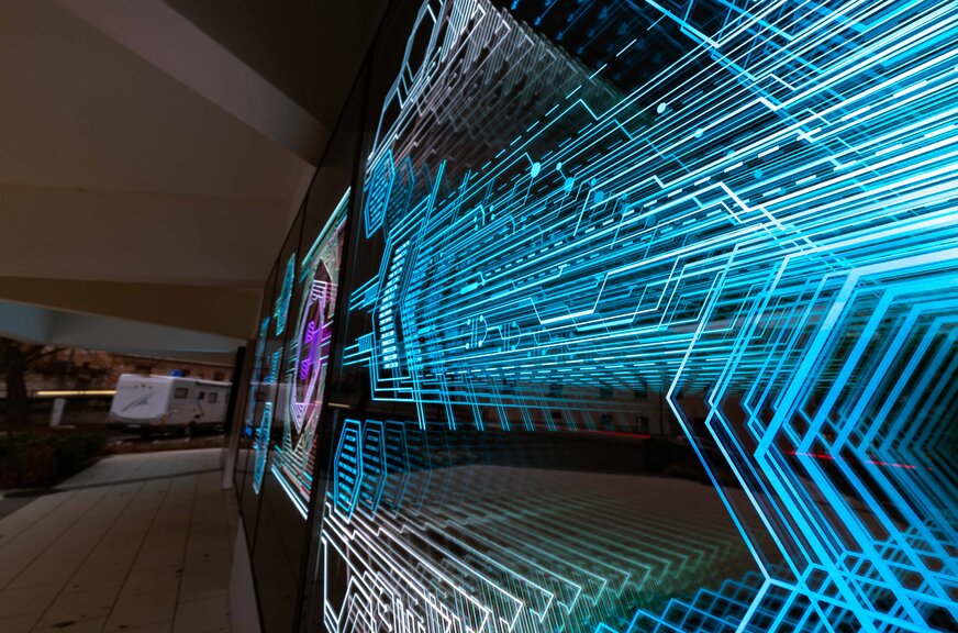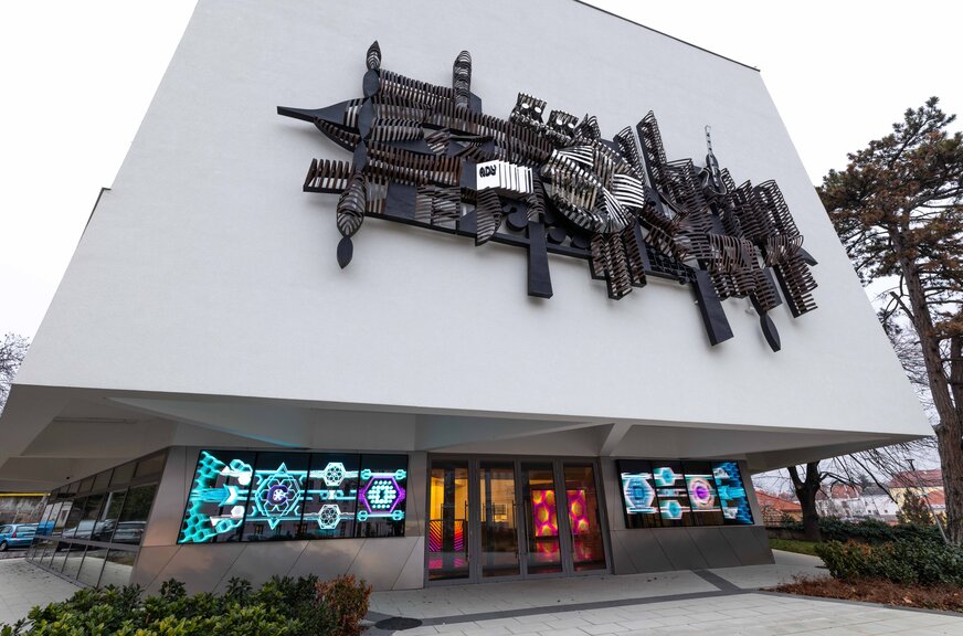 Az egykori Dimitrov épületét különleges formája és homlokzati alkotása már messziről felismerhetővé teszi, egyediségét pedig a CODE születésével most újabb installáció erősíti. A NagyMolnar művészformáció (Nagy Krisztián és Molnár Csaba) alkotói kifejezetten a Digitális Élményközpontra álmodták meg a bejáratnál található, különleges alkotást, ami az intézmény nevéhez hűen még kódokat is magában rejt. Az installációról, fényszobrászatról és inspirációs forrásokról Nagy Krisztián mesélt.